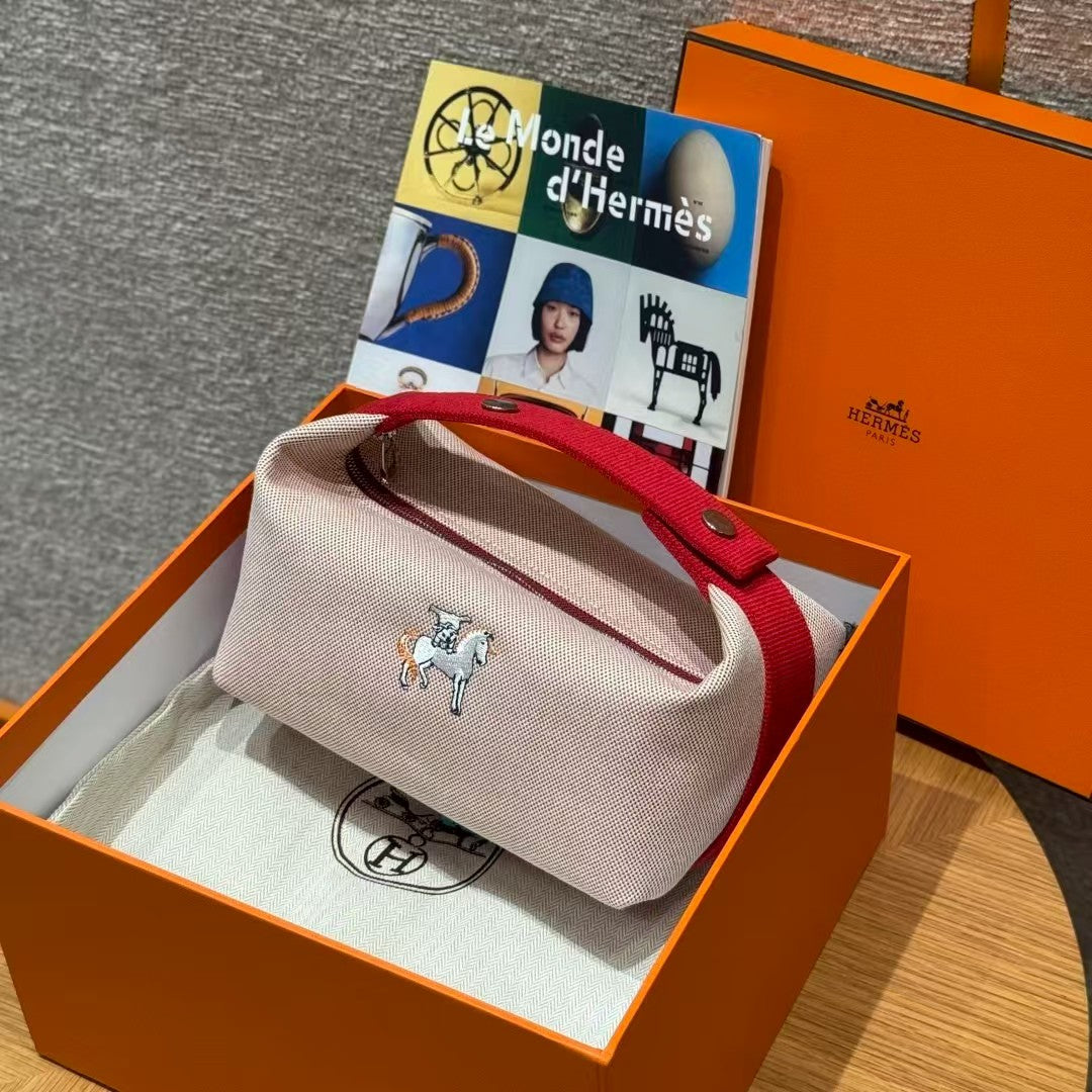 A spacious and versatile Hermès Bride-A-Brac Large Case in H Cabriole cotton canvas, perfect for stylish organization.