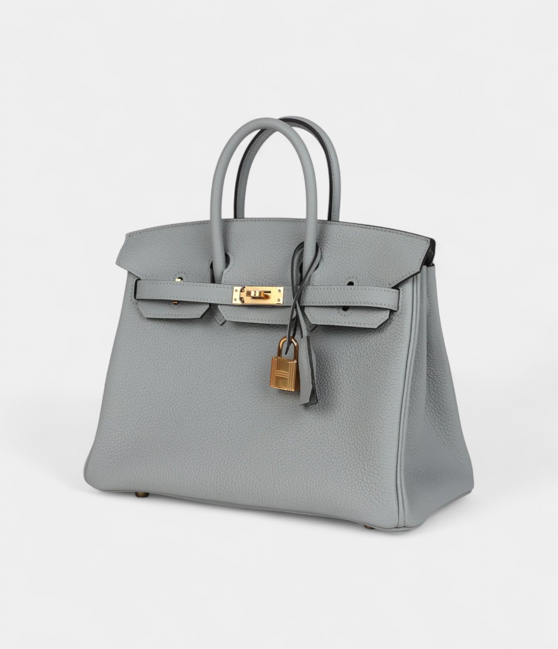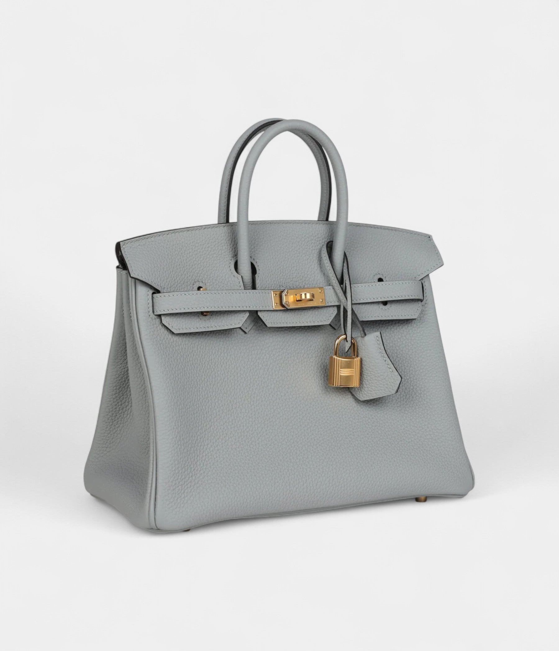 The Hermès Birkin 25 in Bleu Glacier Togo with gold hardware is a softly striking icon that blends cool elegance with classic luxury.