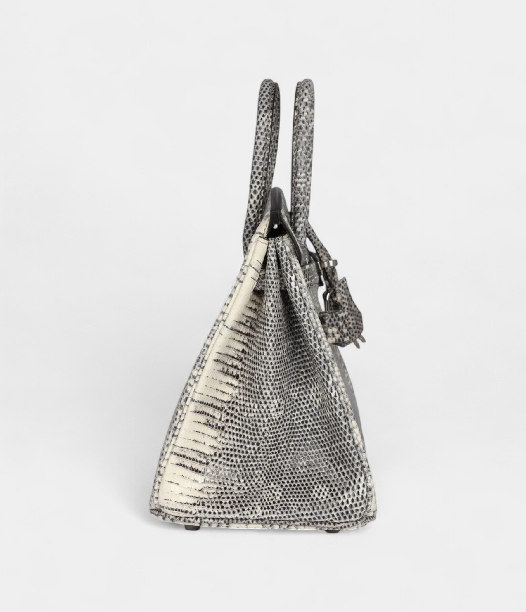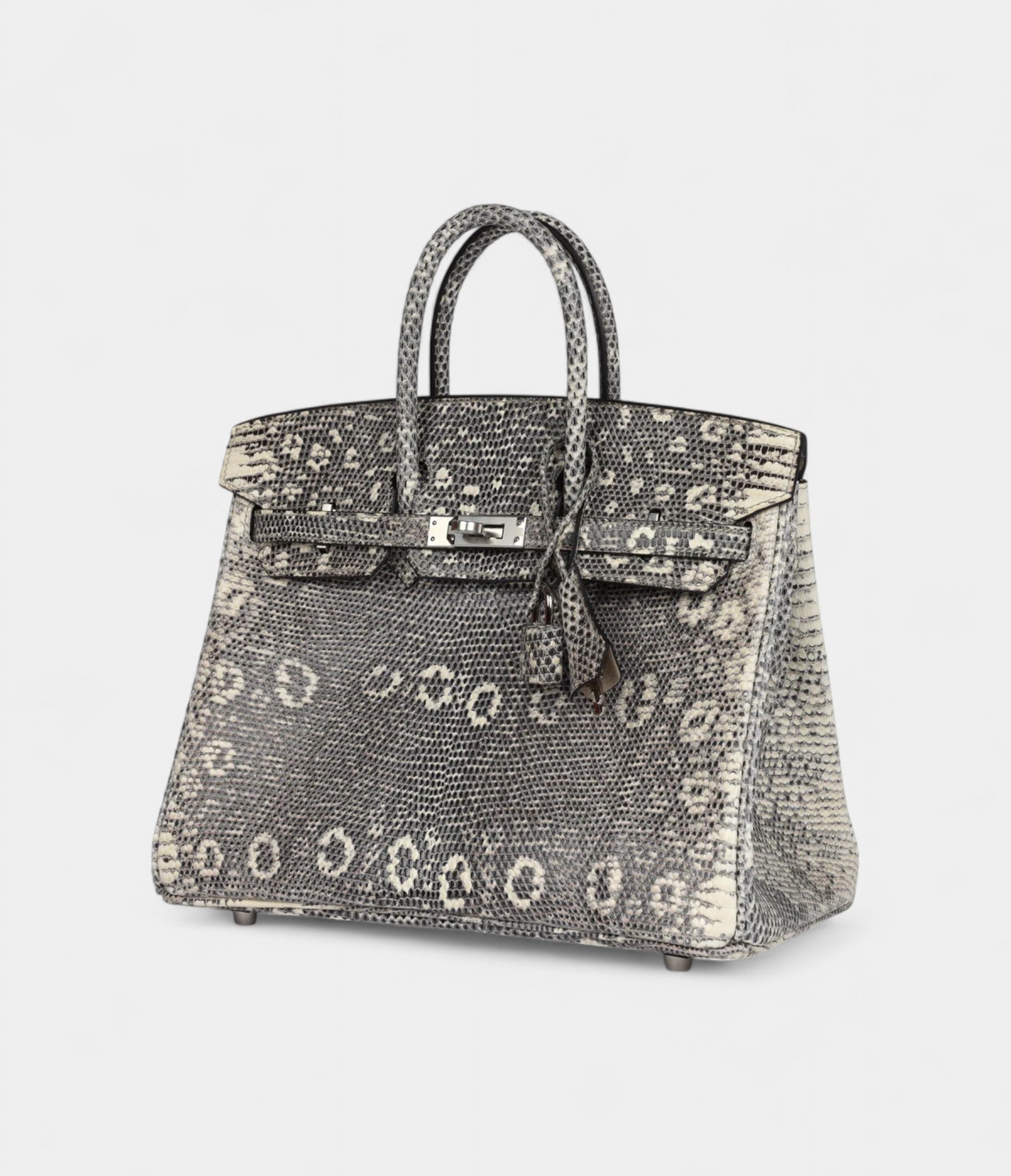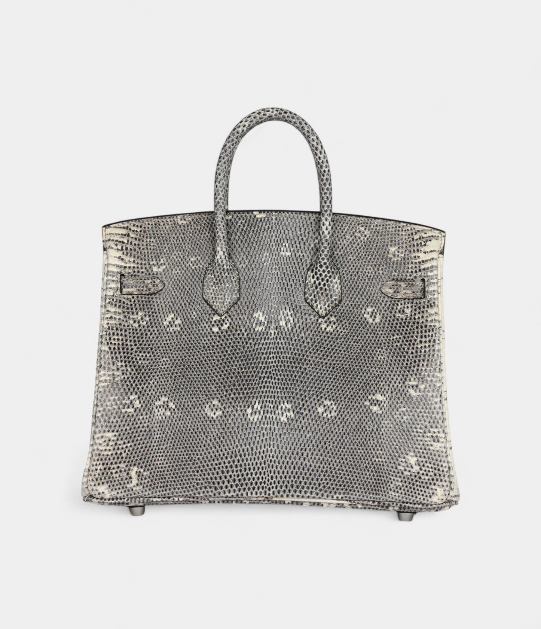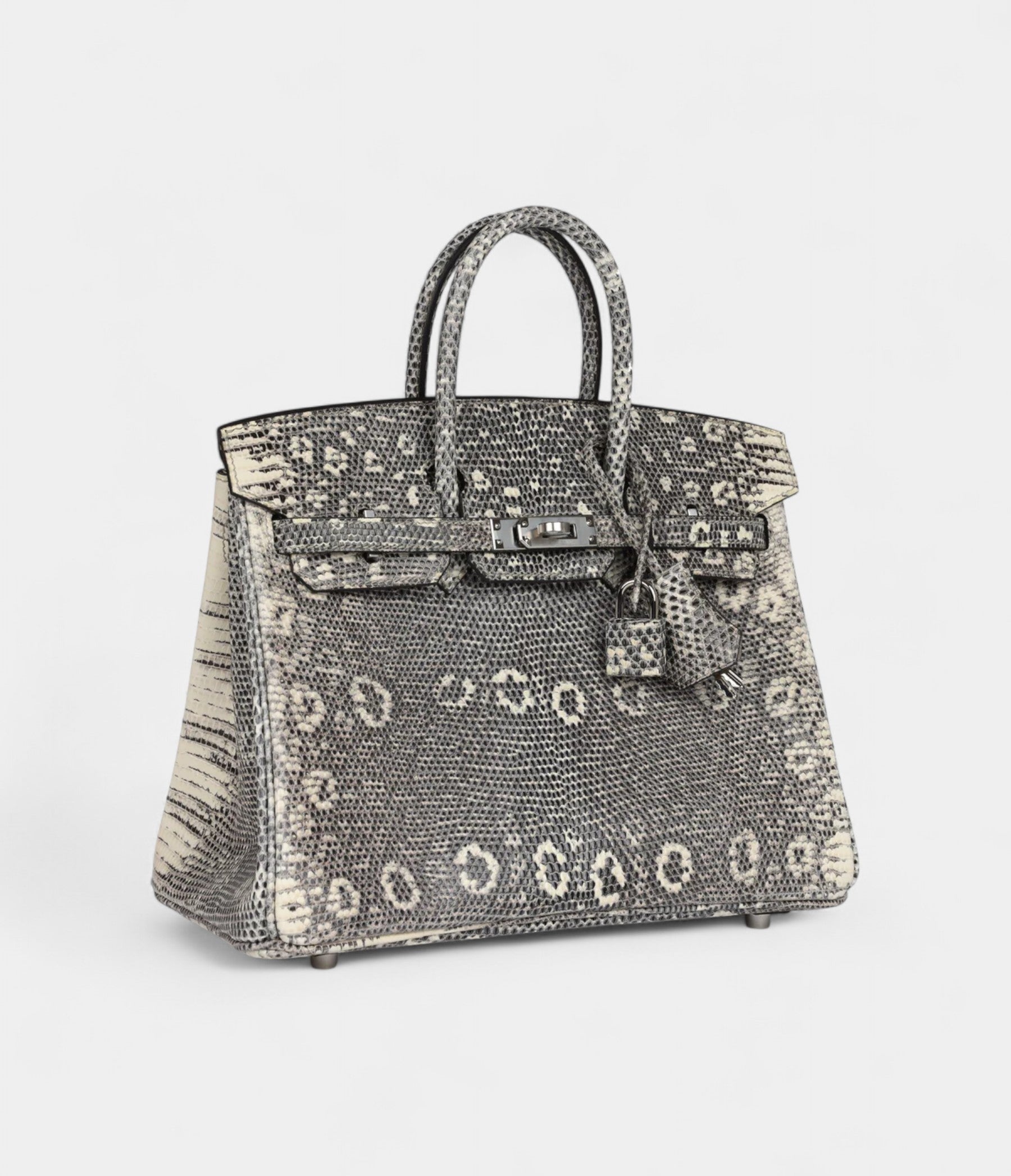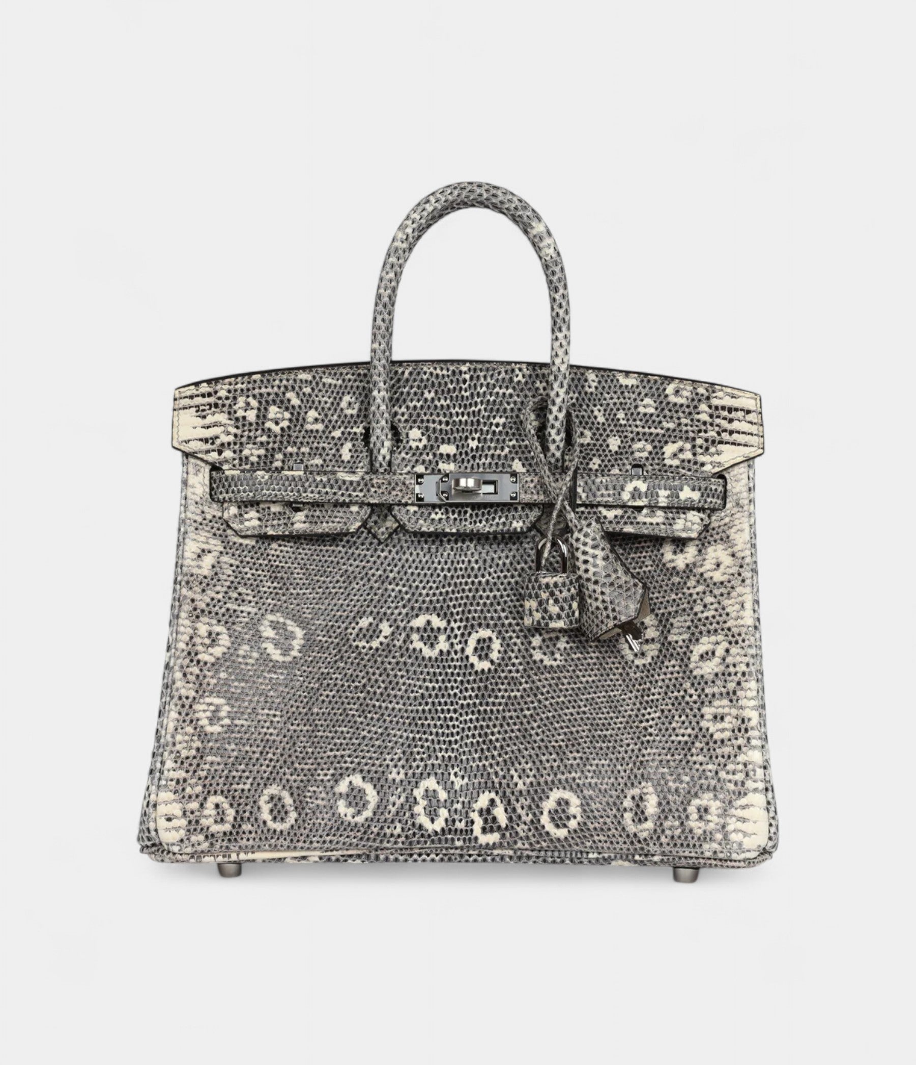 The Hermès Birkin 25 in Ombre Varanus Salvator Lizard with Palladium Hardware is a rare masterpiece of exotic elegance and refined craftsmanship.