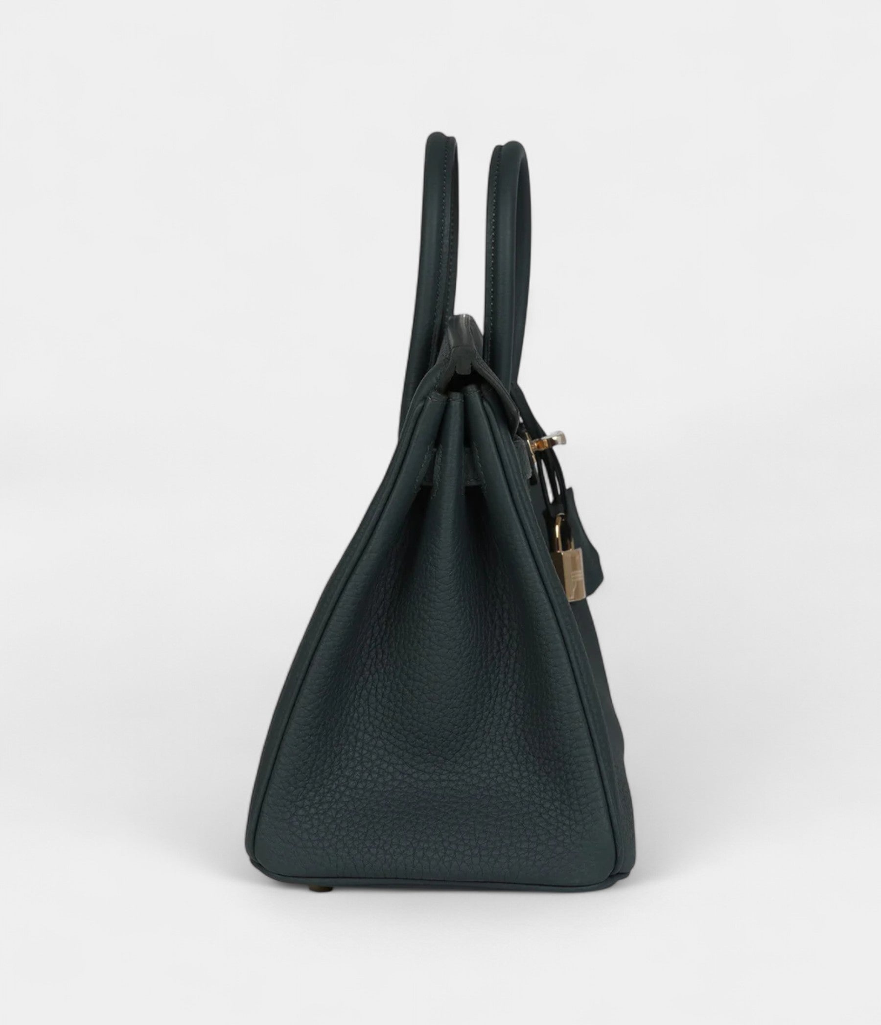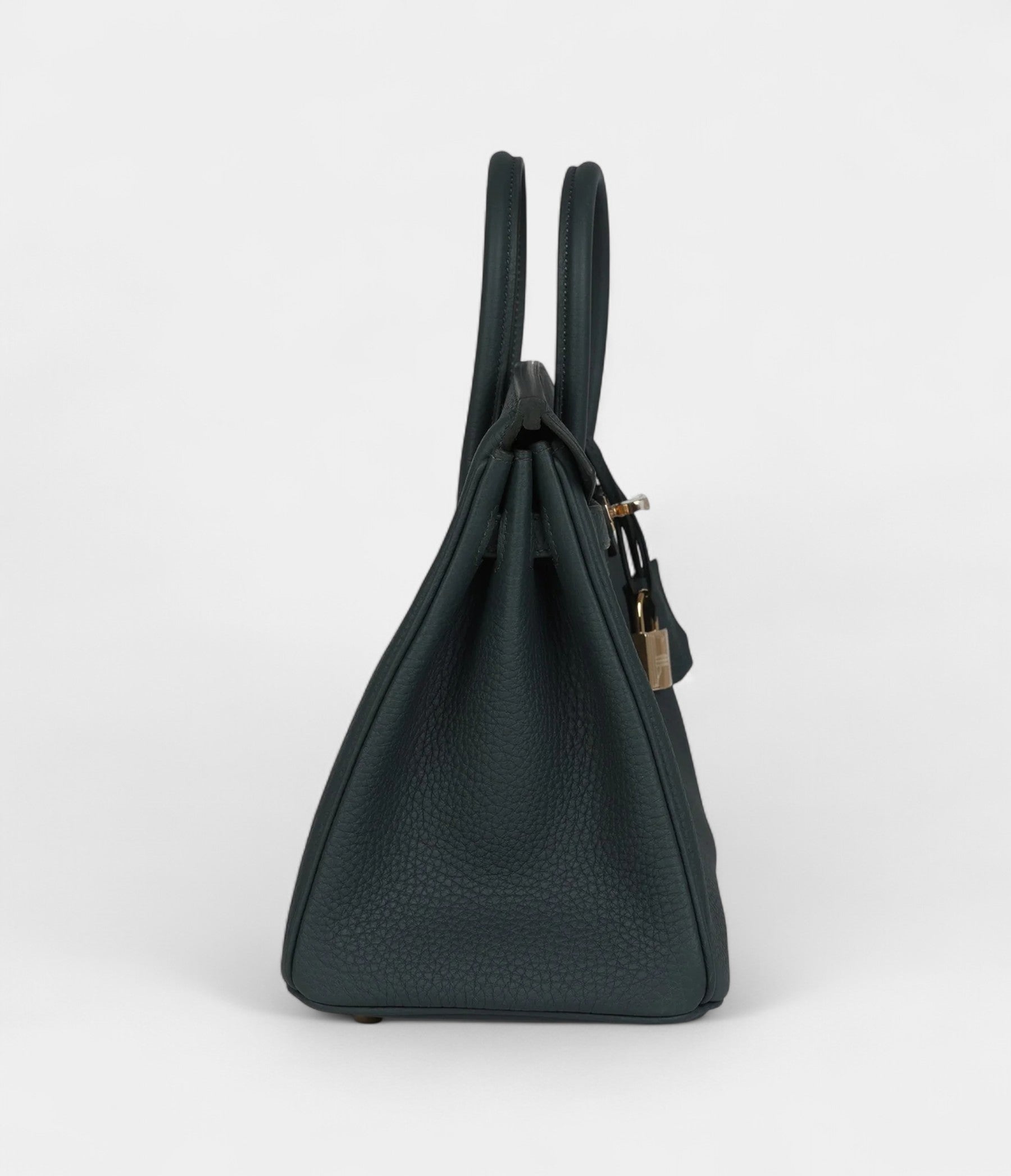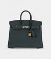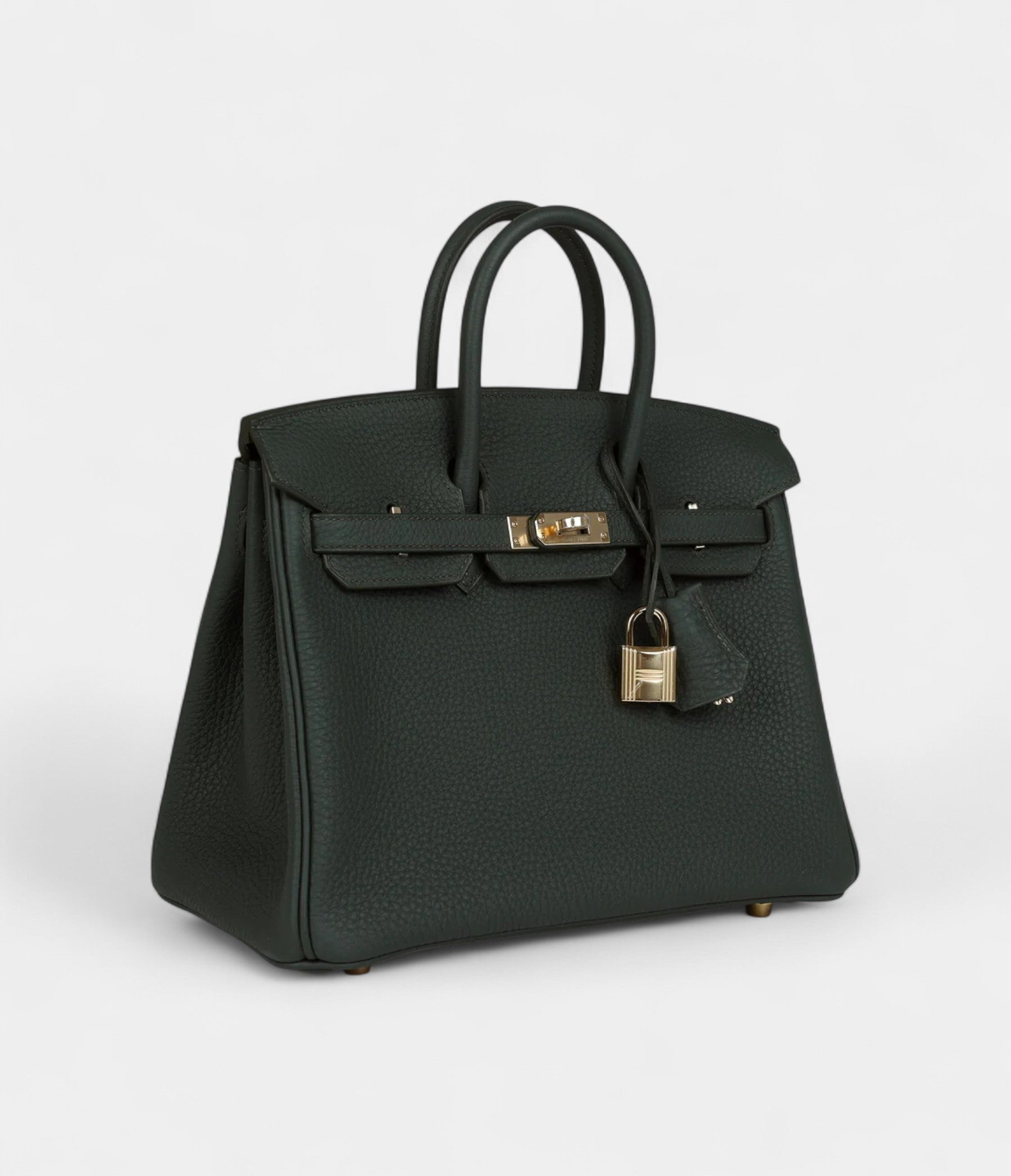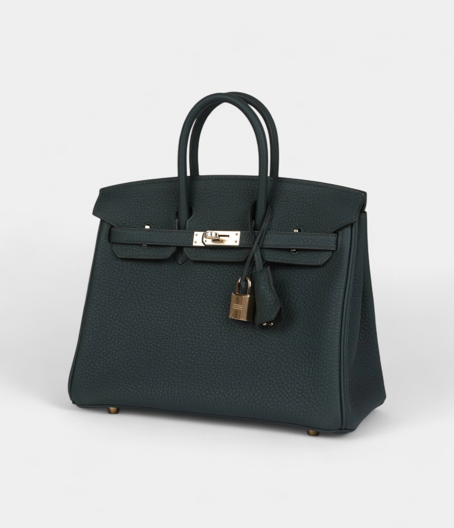 Rich and refined, the Hermès Birkin 25 in Vert Mangrove Togo with permabrass hardware brings earthy elegance to a timeless icon.