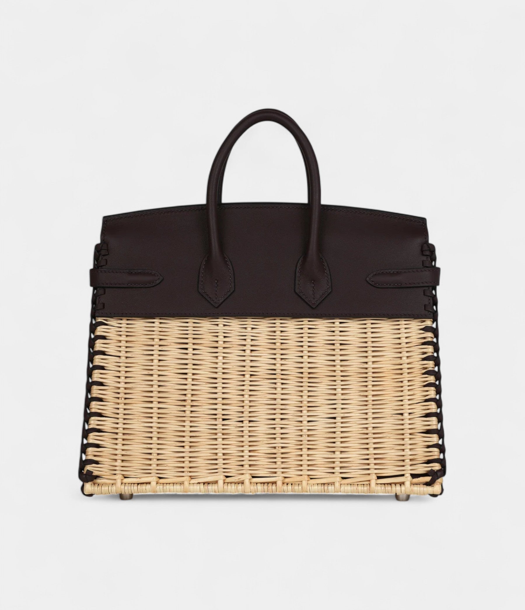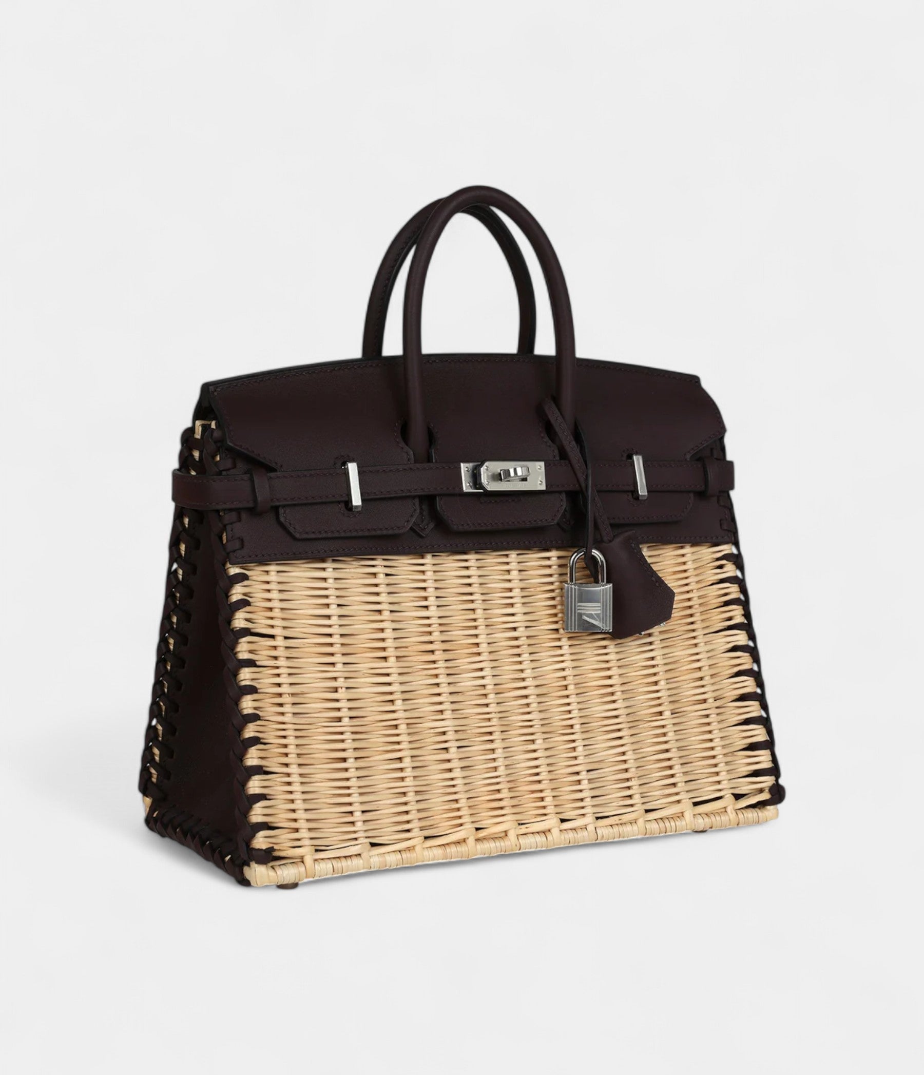 The Hermès Birkin Picnic 25 in Rouge Sellier Swift with palladium hardware is a rare blend of rustic charm and refined elegance.