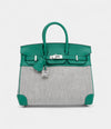Hermès Vert Vertigo Swift and Ecru and Black Toile Verso Quadrille Birkin 25 Palladium Hardware