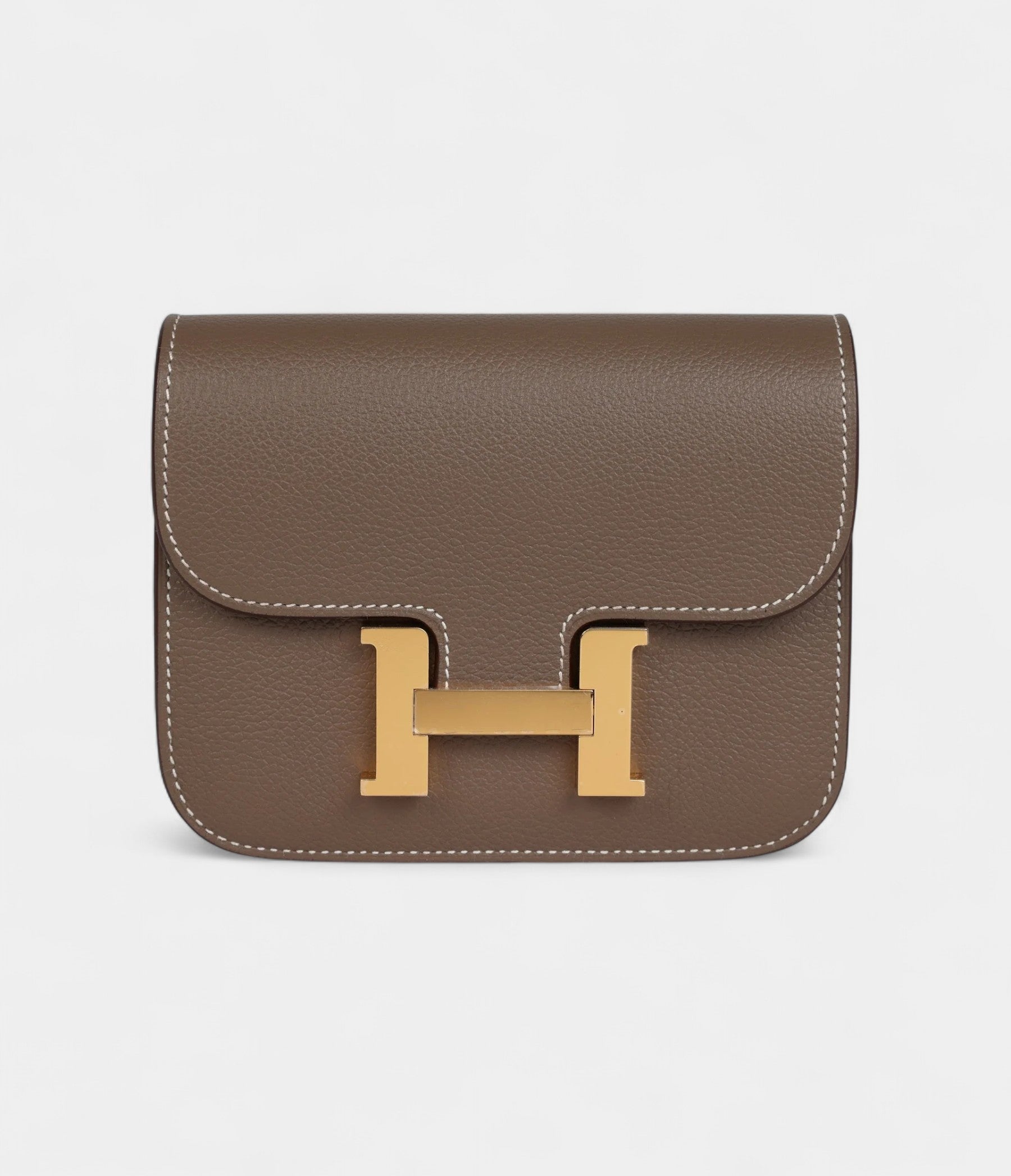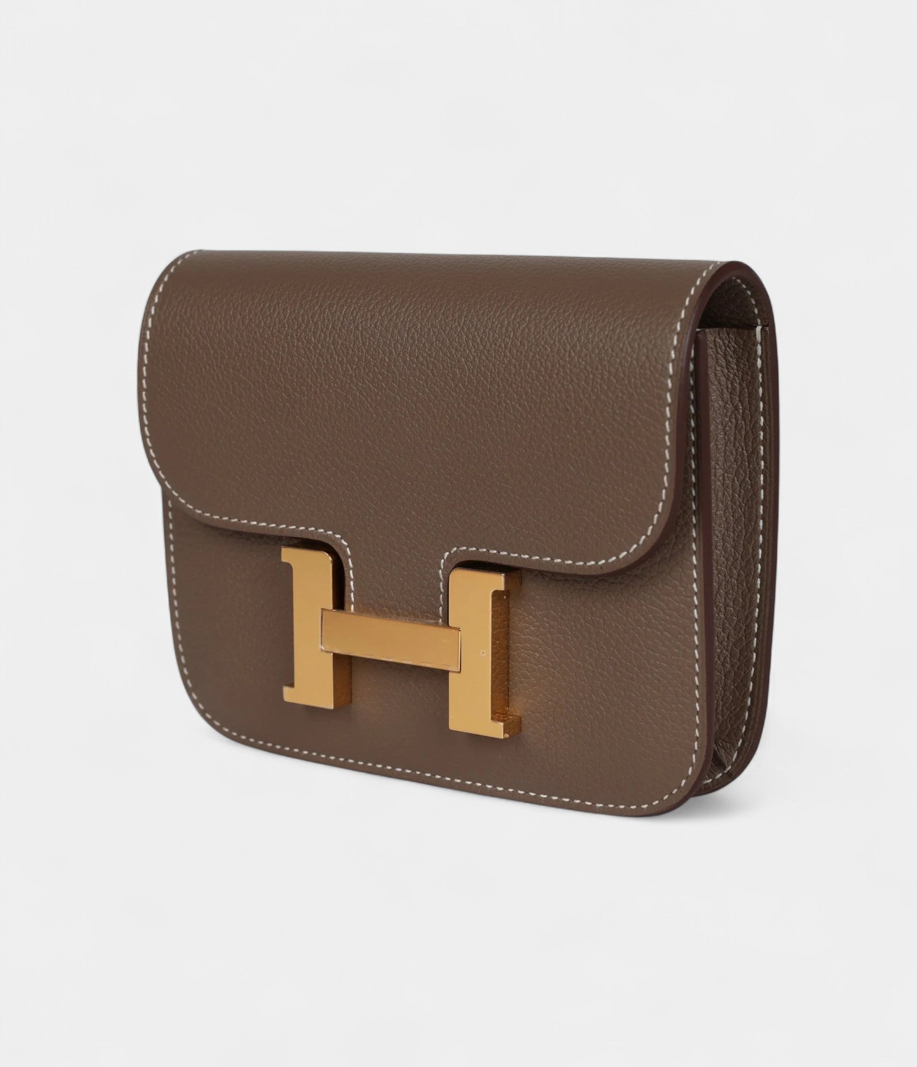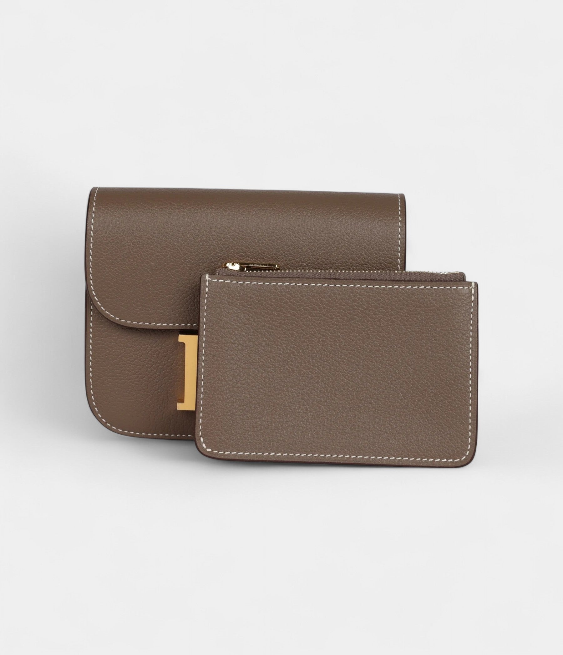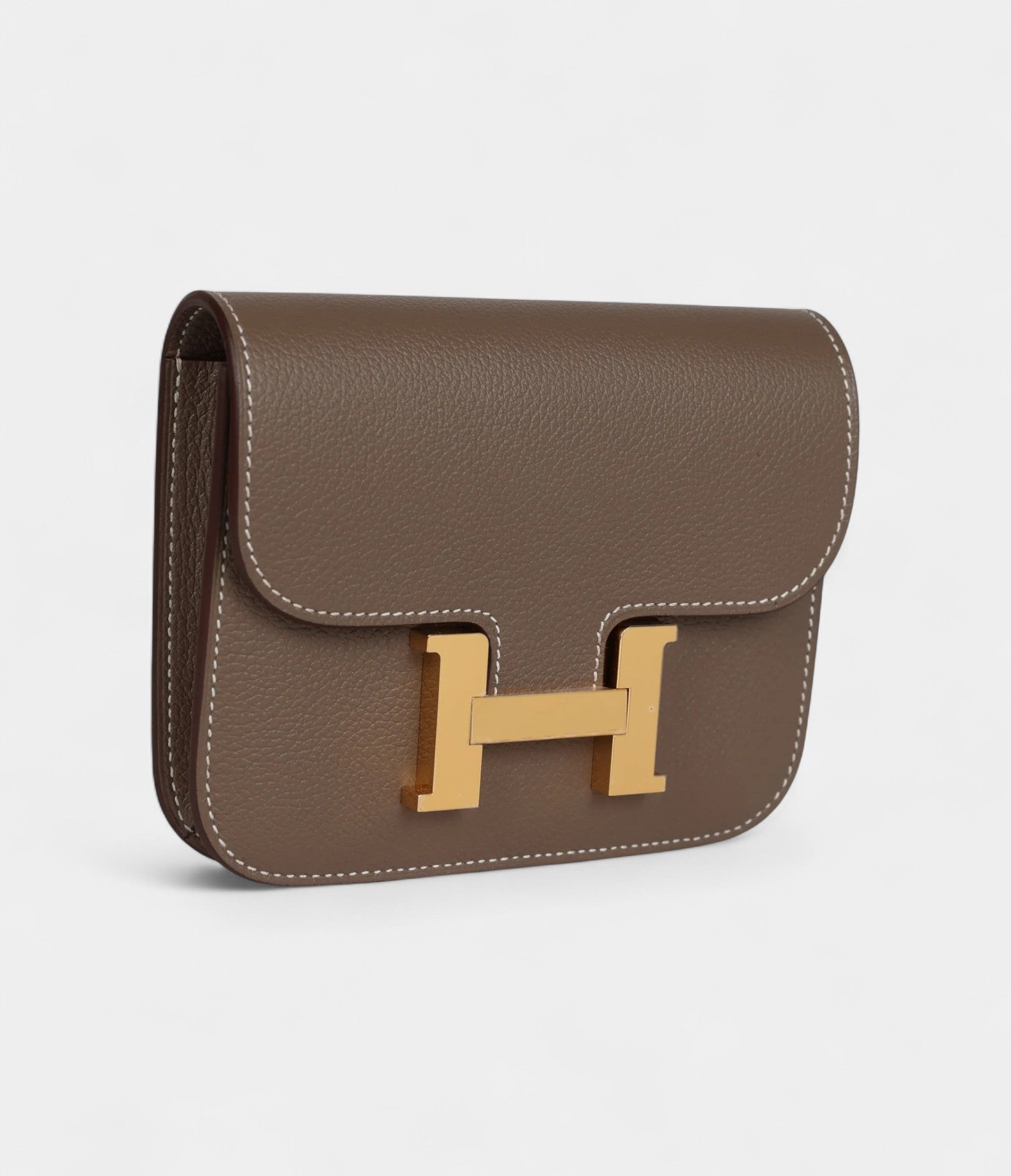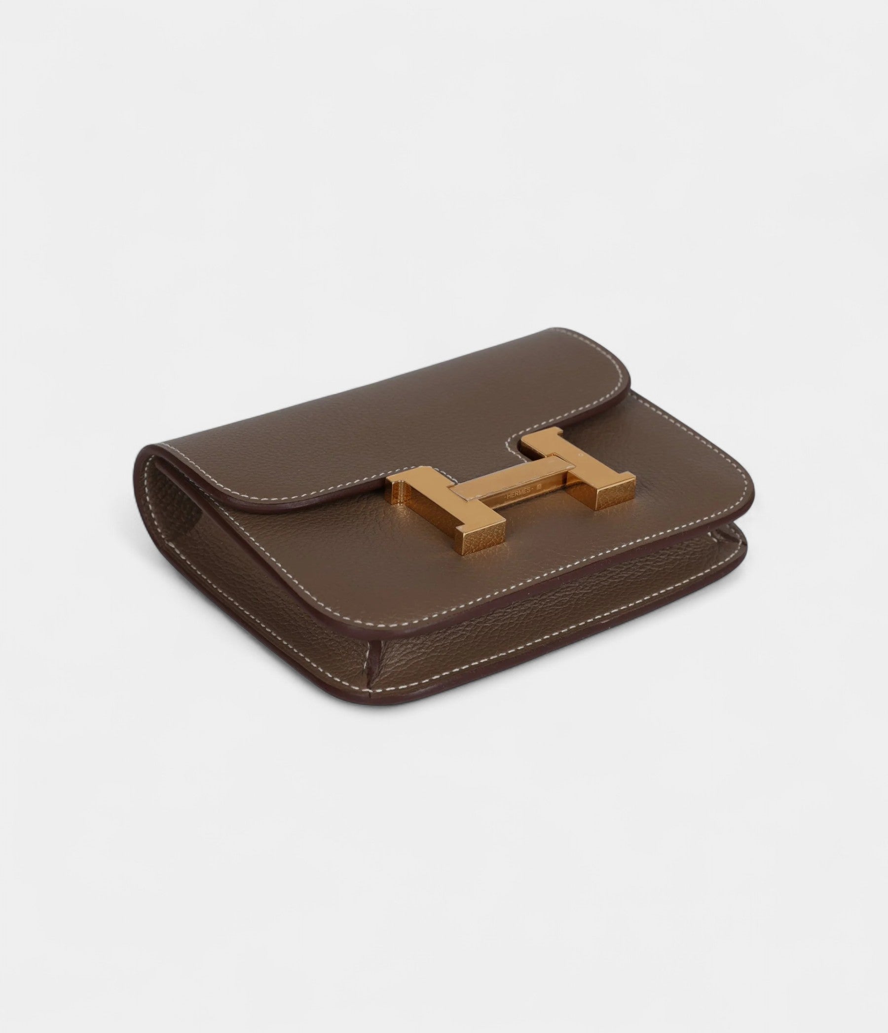 The Etoupe Evercolor Constance Slim Wallet by Hermès offers timeless elegance and versatile functionality in a compact silhouette.