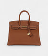 A classic Hermès Birkin 35 in Gold Togo leather with gold hardware, radiating timeless sophistication and luxury.