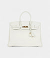 A pristine Hermès Birkin 35 in white Clemence leather with gold hardware, delivering timeless elegance and iconic luxury.