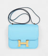 The Hermès Constance 18 in Céleste Epsom with gold hardware is a vibrant, polished gem of effortless sophistication.