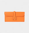 Bold and vibrant, the Hermès Jige 29 Clutch in Orange Swift leather is a luxurious statement piece that adds a pop of color to any ensemble.