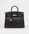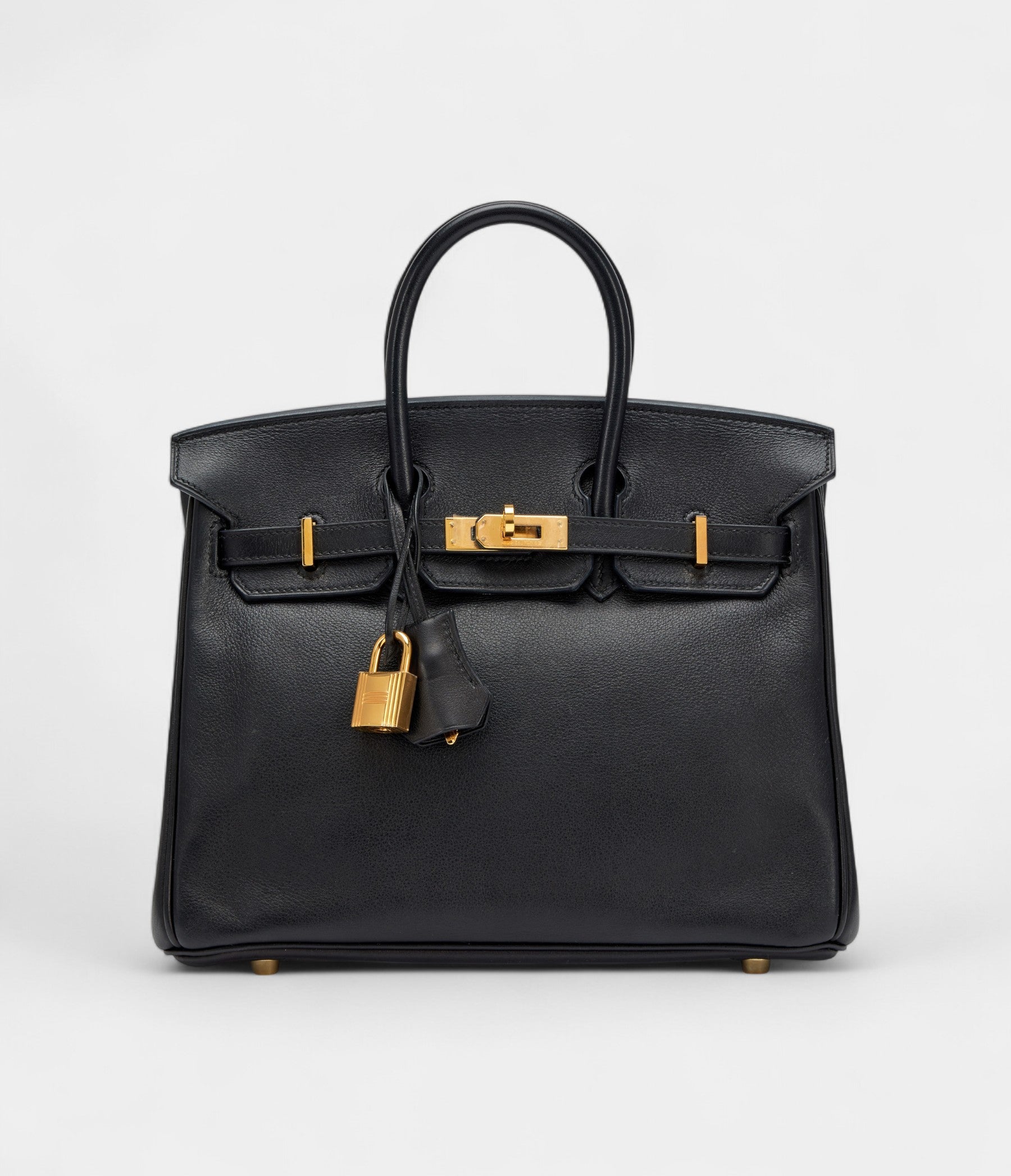 An iconic blend of elegance and craftsmanship, the Hermès Birkin 25 in Black Novillo with gold hardware is a timeless statement in luxury.