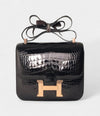 The Hermès Constance 24 Alligator Noir Bag is the epitome of luxury, sophistication, and rarity. Crafted from Noir Alligator Mississippiensis leather, its deep, glossy black finish exudes timeless elegance, making it a coveted piece among collectors and fashion enthusiasts alike. This exquisite material not only enhances the bag’s rich texture but also adds an element of exclusivity, as Hermès' exotic leather craftsmanship is revered worldwide.