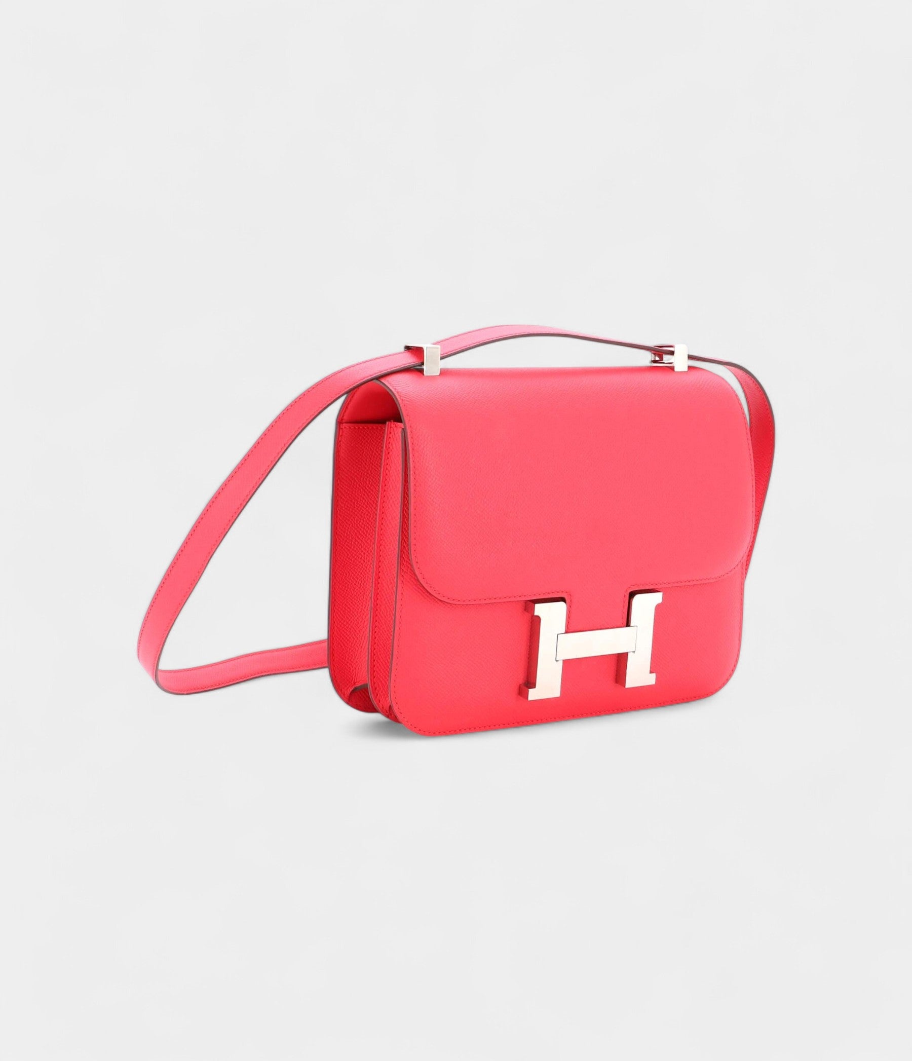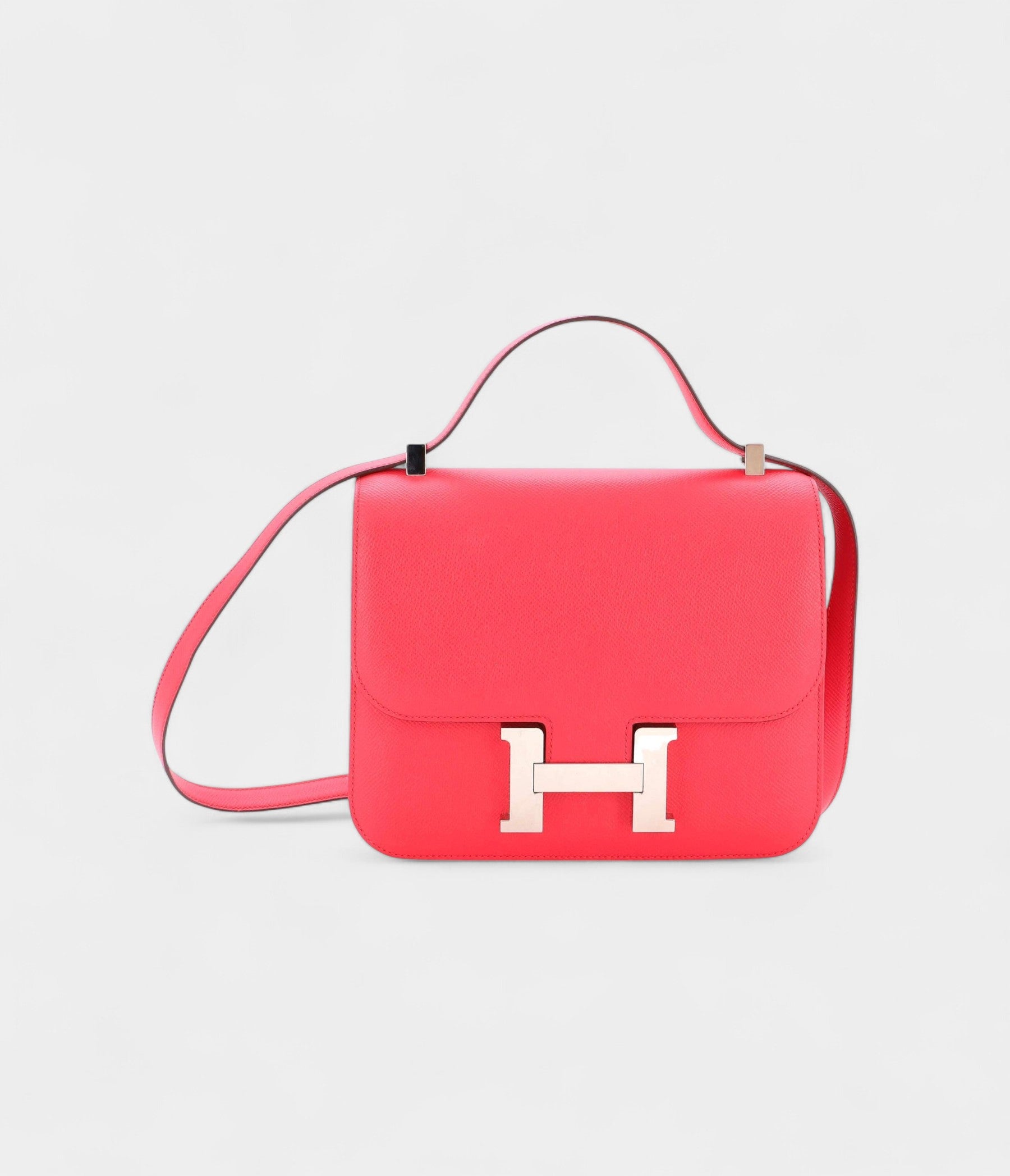 This Constance 24 is designed with tonal stitching, an iconic "H" snap lock closure, and an adjustable shoulder strap, offering both versatility and effortless style. The interior is lined with lambskin leather and includes a zip pocket with an Hermès engraved pull, ensuring practicality without compromising sophistication. The structured silhouette and rich texture make this bag a perfect choice for both casual and formal occasions.