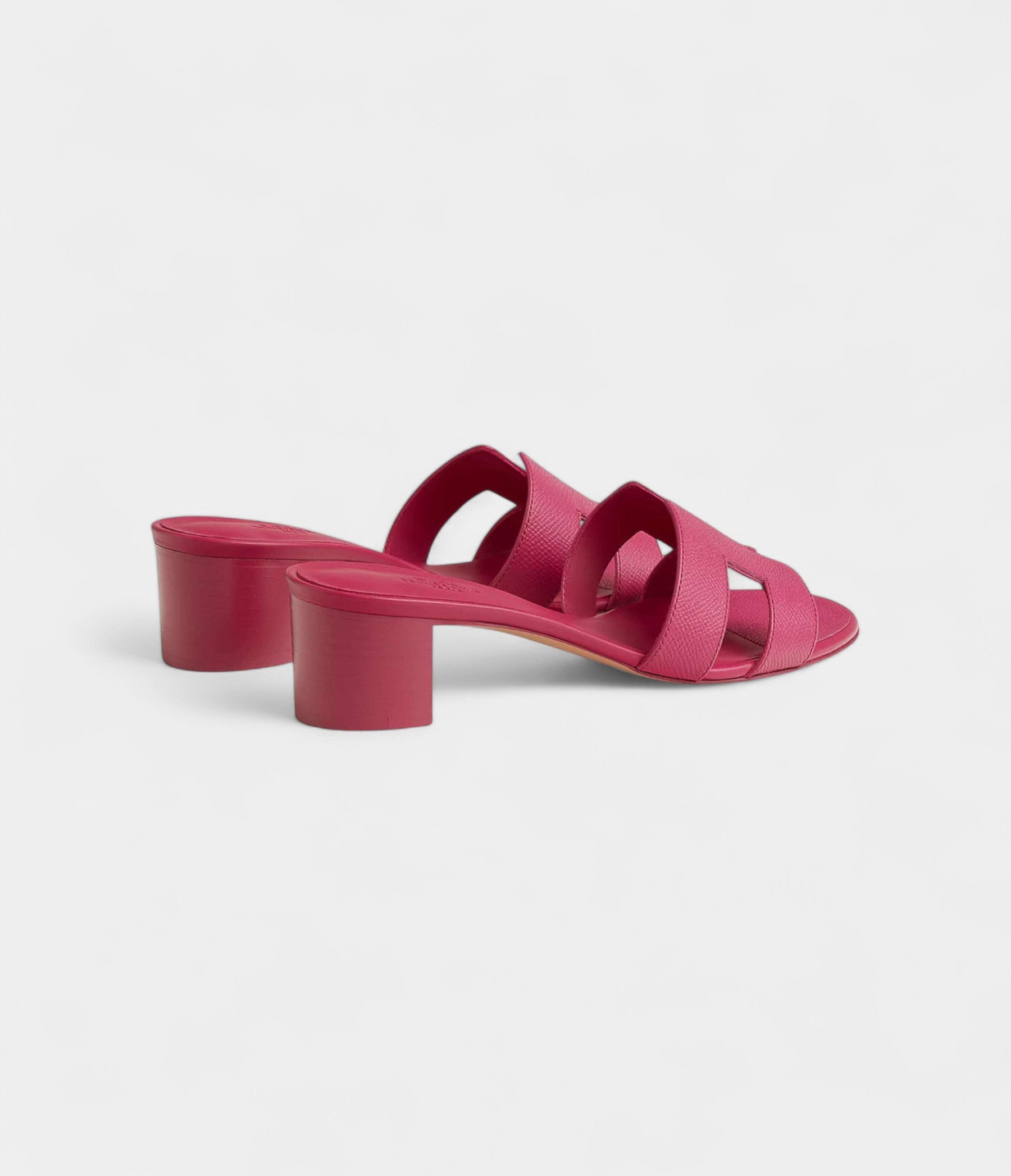 Hermès Oasis Sandals Epsom Calfskin Rose Bougainvillier deliver a striking balance of bold color and refined design, crafted from premium Epsom calfskin leather in the vibrant and expressive Rose Bougainvillier shade that adds a vivid burst of energy to any ensemble. The sandals feature the brand’s iconic H-cut upper, offering both visual identity and a secure, structured fit across the foot.