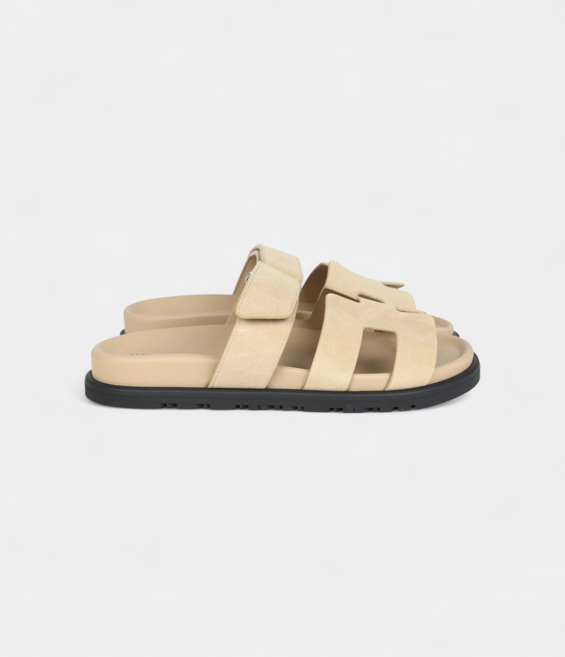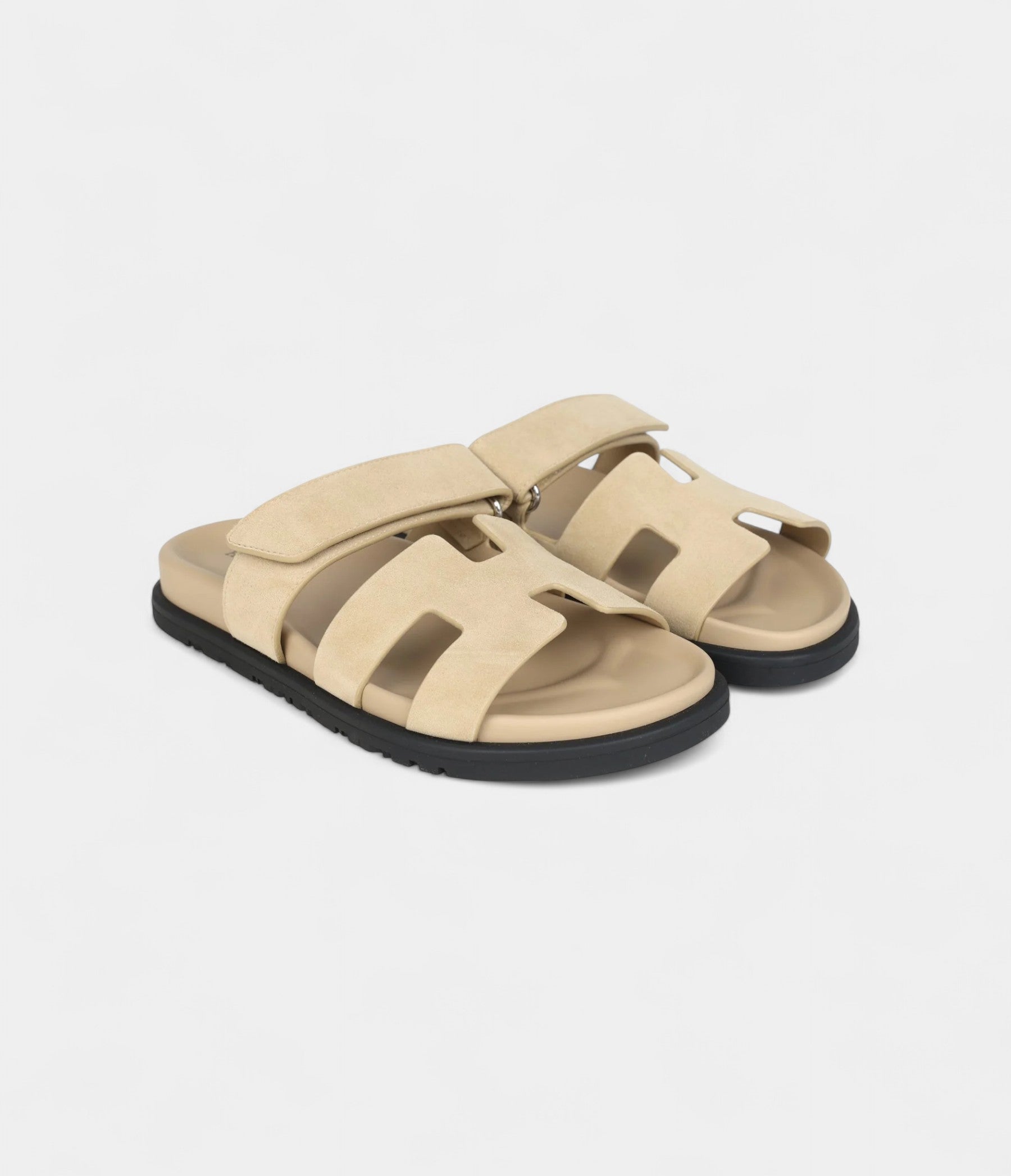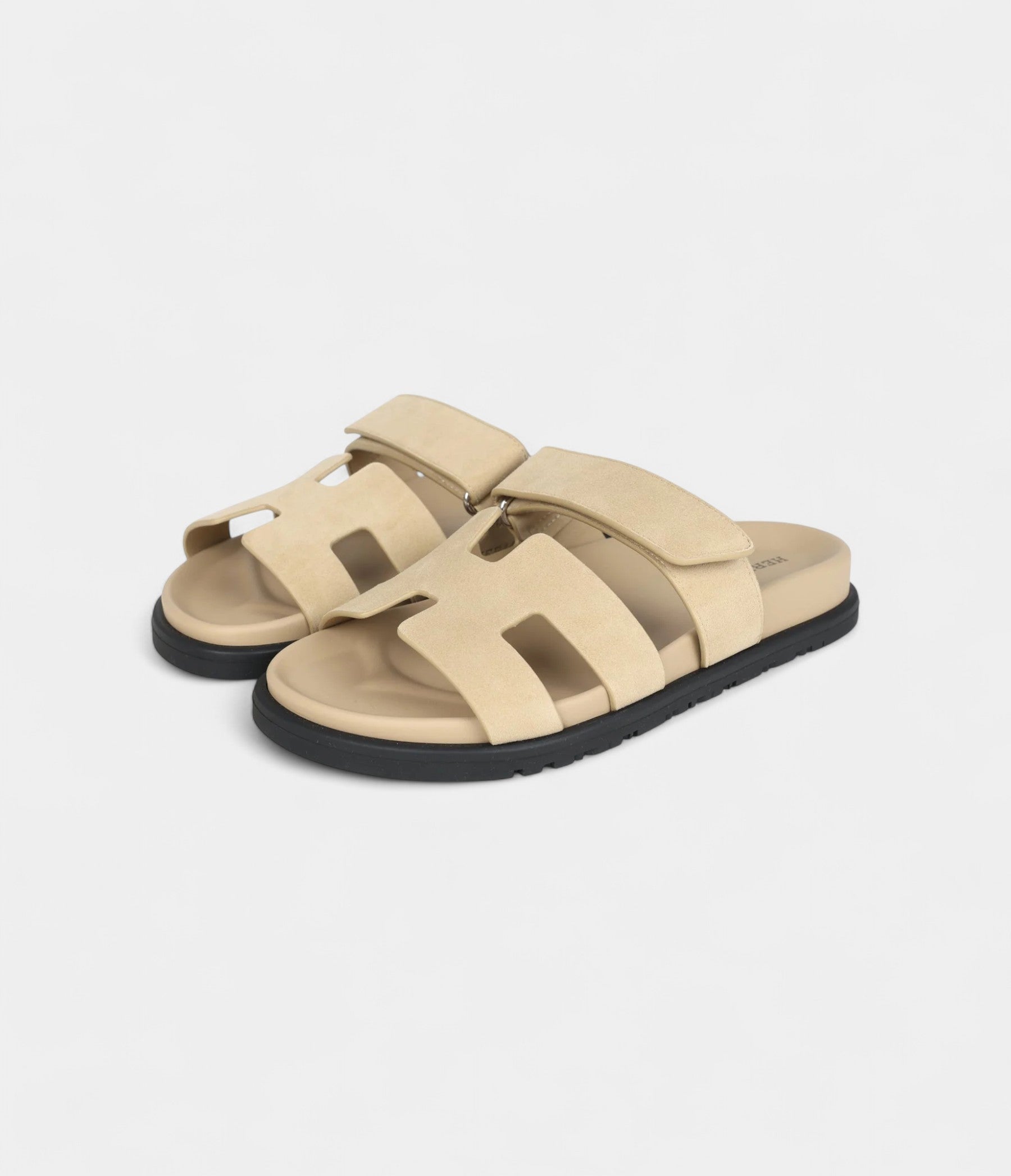 The Hermès Chypre Techno Sandals in Beige Lin Suede with Palladium Hardware blend soft sophistication with contemporary luxury for effortless elegance.
