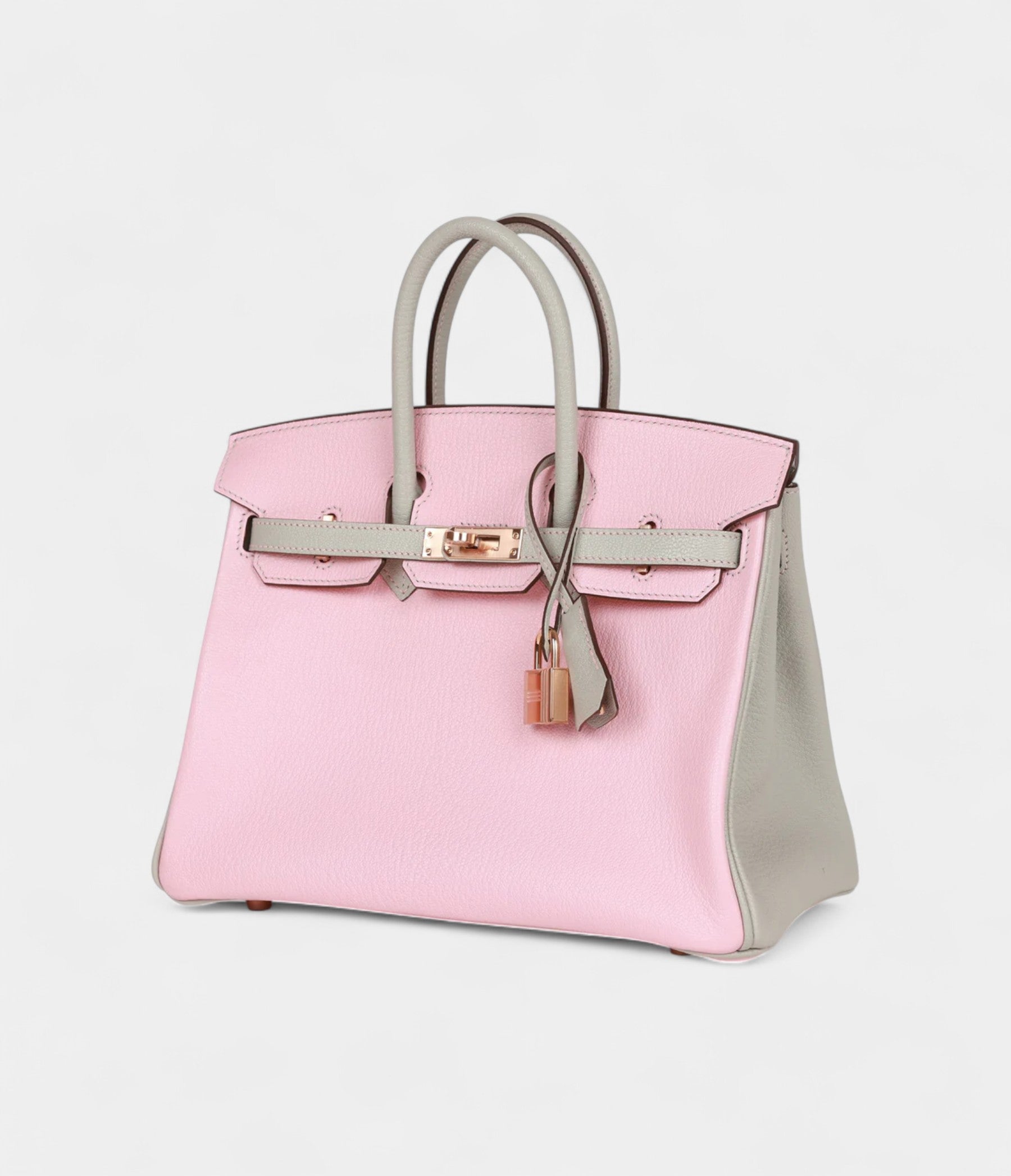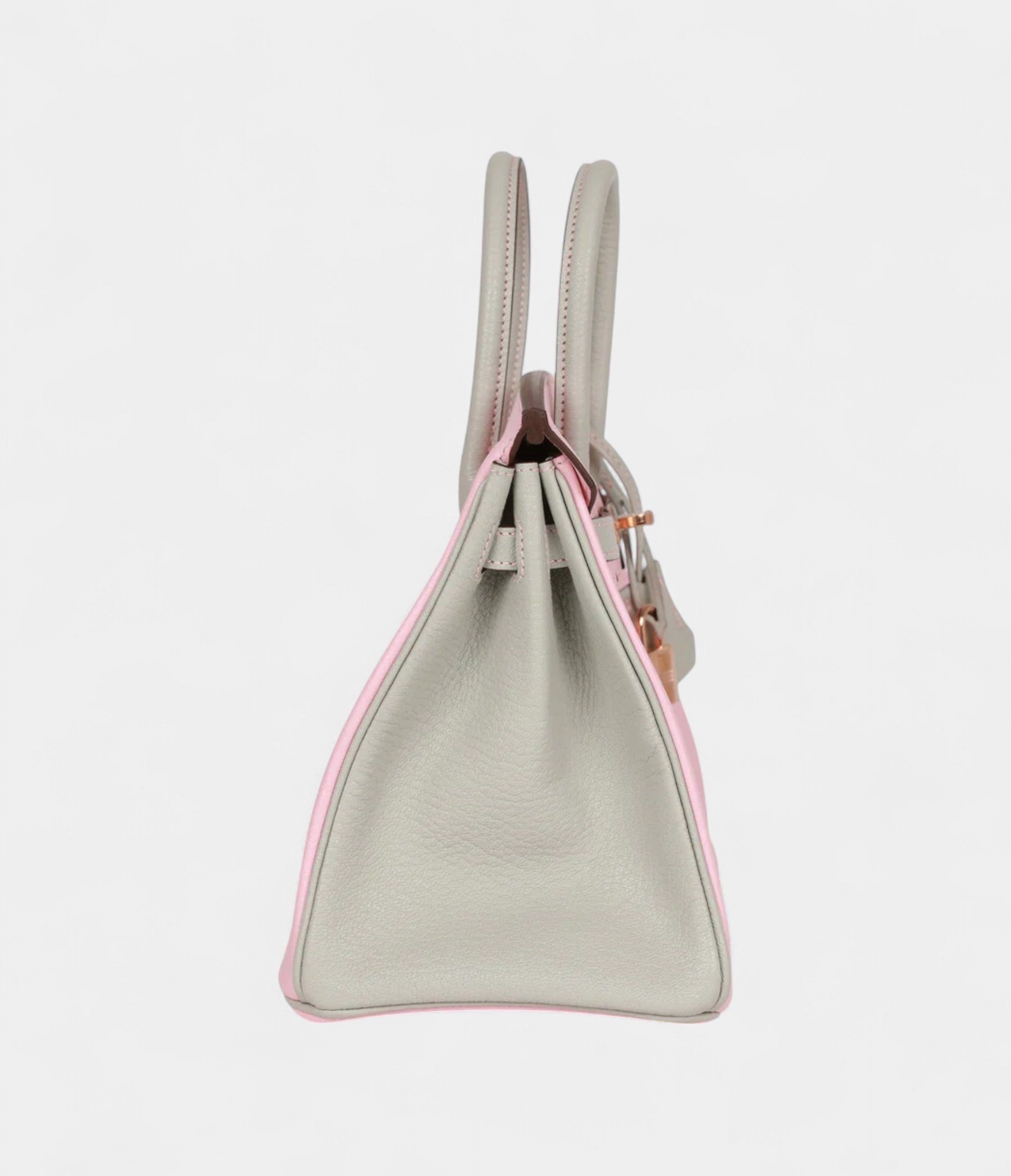 Hermès Birkin 25 Rose Sakura and Gris Perle Chevre Mysore Rose Gold Hardware