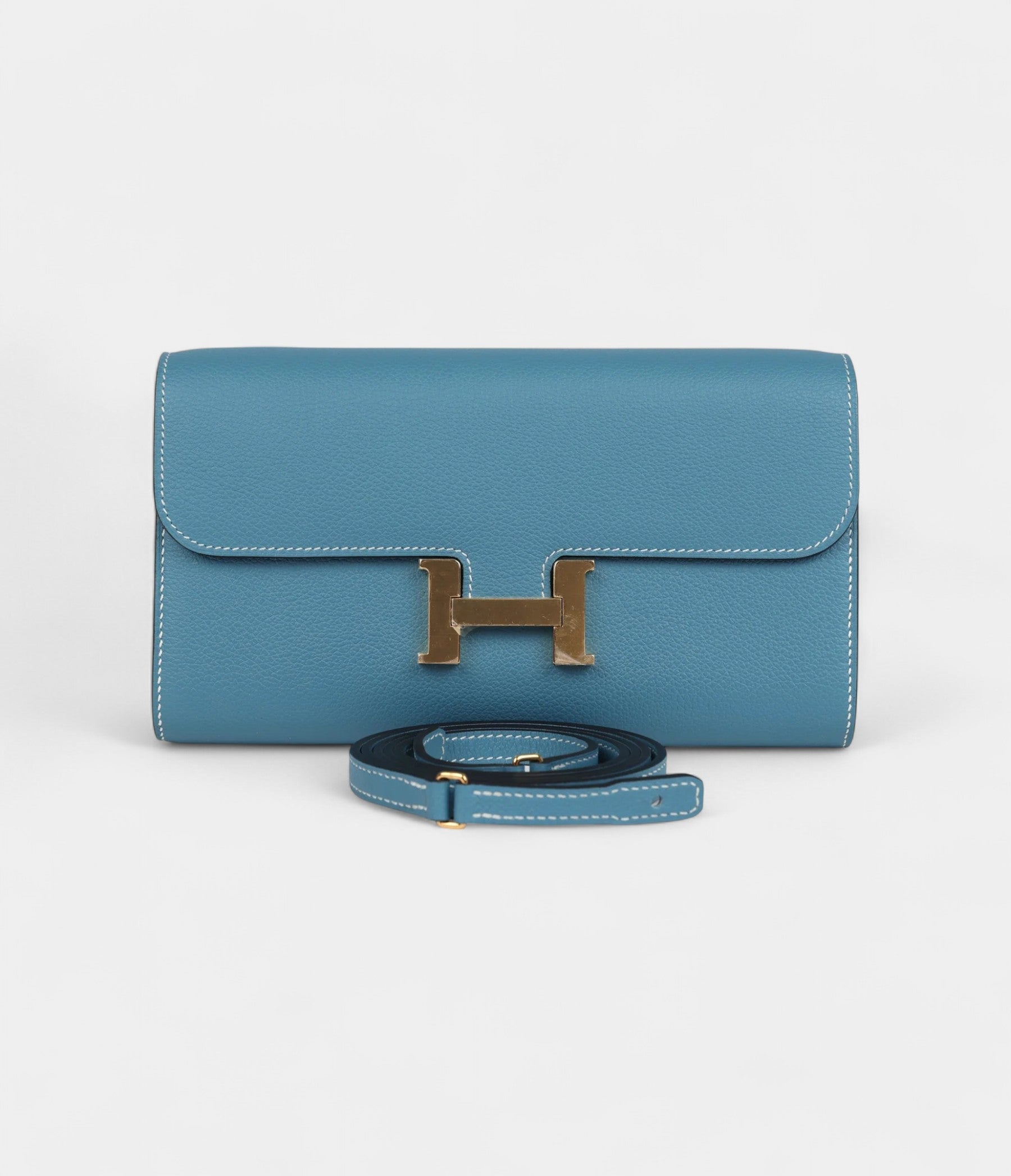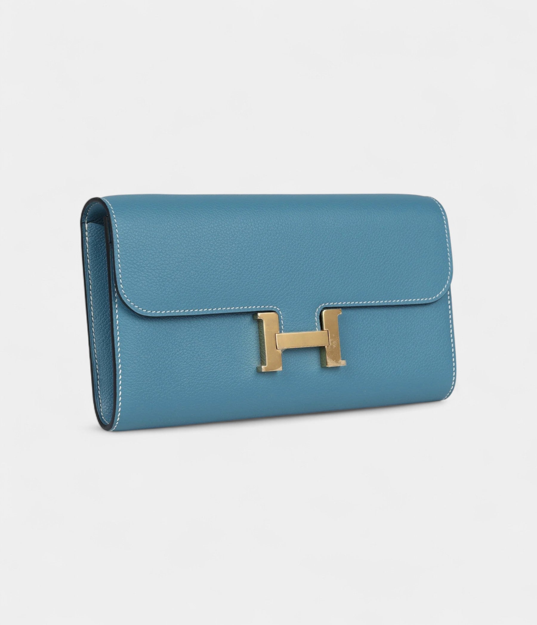 Hermès Constance Wallet To Go Blue Jean Evercolor Gold Hardware