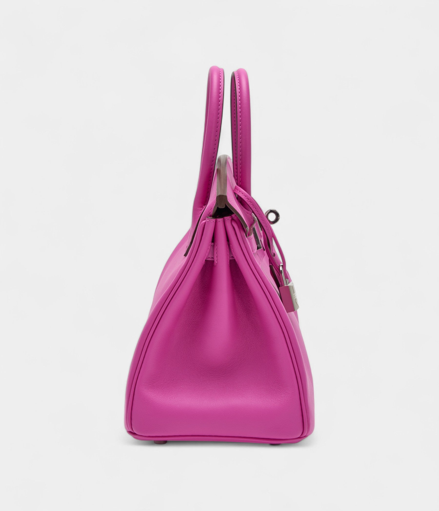 The Hermès Birkin 25 in Magnolia Swift with palladium hardware is a vibrant, feminine icon that brings joyful color to timeless luxury.