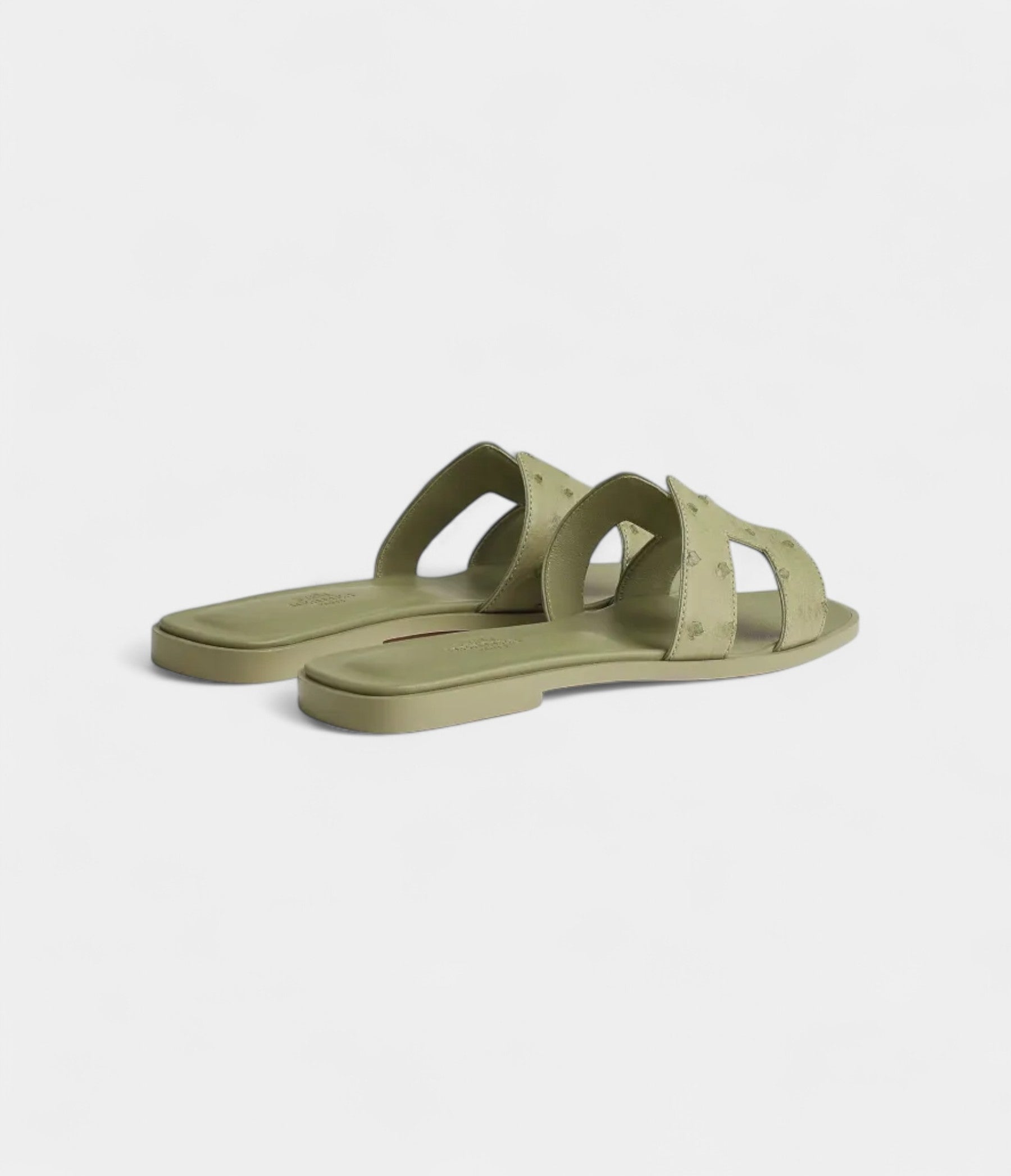 Hermès Oran sandals in light olive green deliver earthy elegance and timeless ease for refined summer styling.