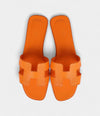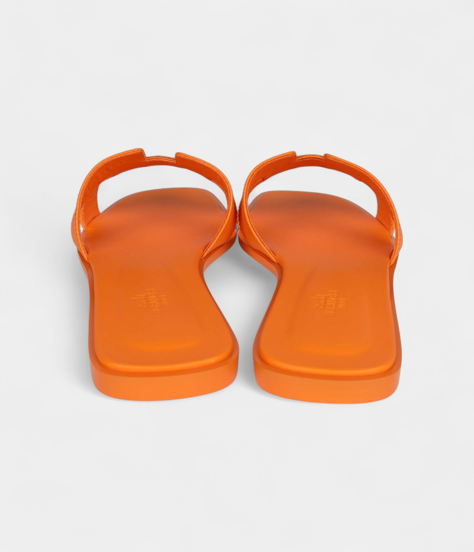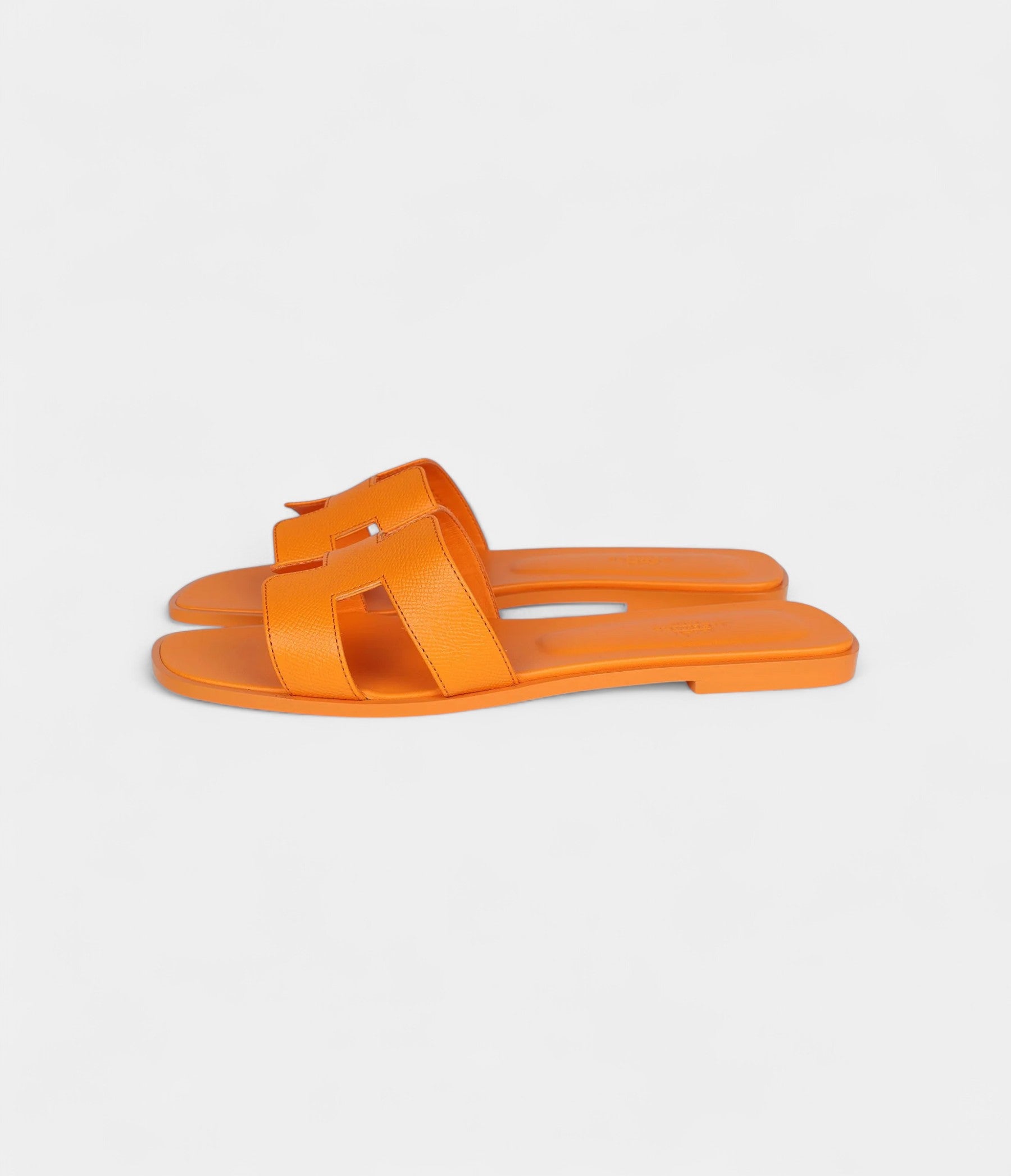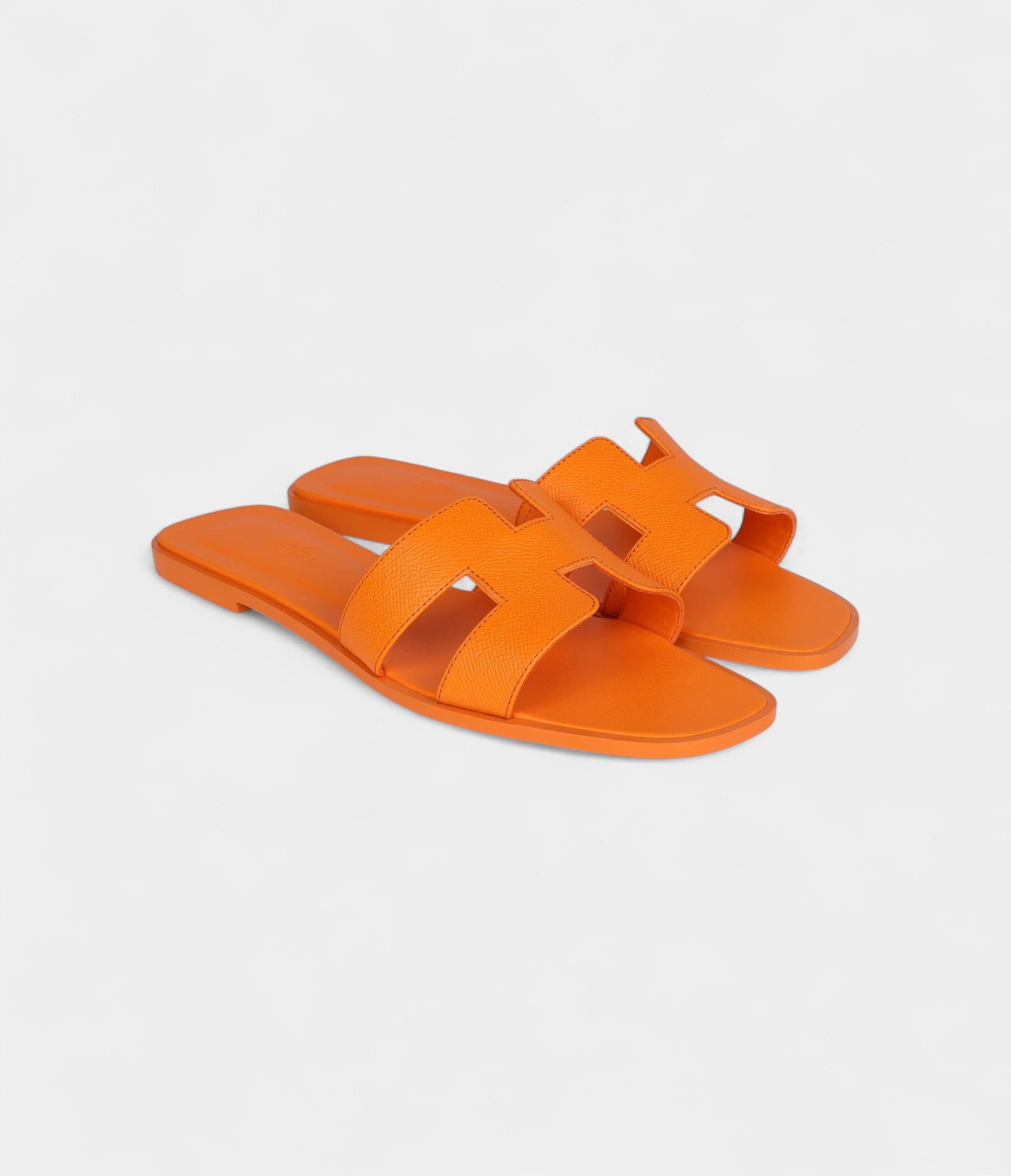 The Hermès Oran Sandals in Orange Sunset Epsom leather combine iconic design with bold color and timeless craftsmanship.